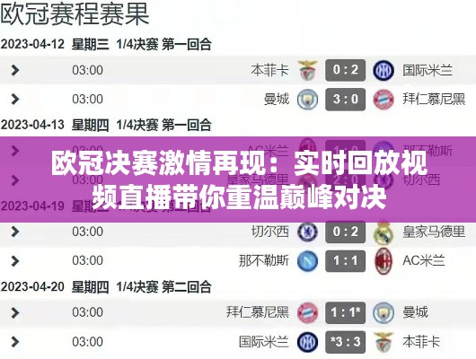 标题:欧冠决赛激情再现:实时回放视频直播带你重温巅峰对决